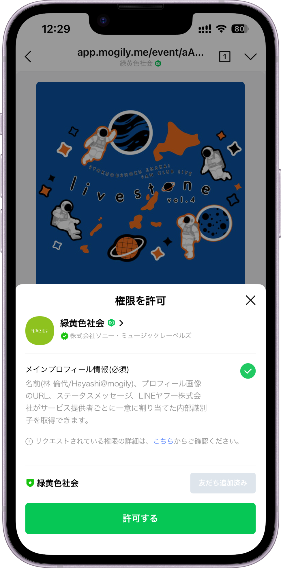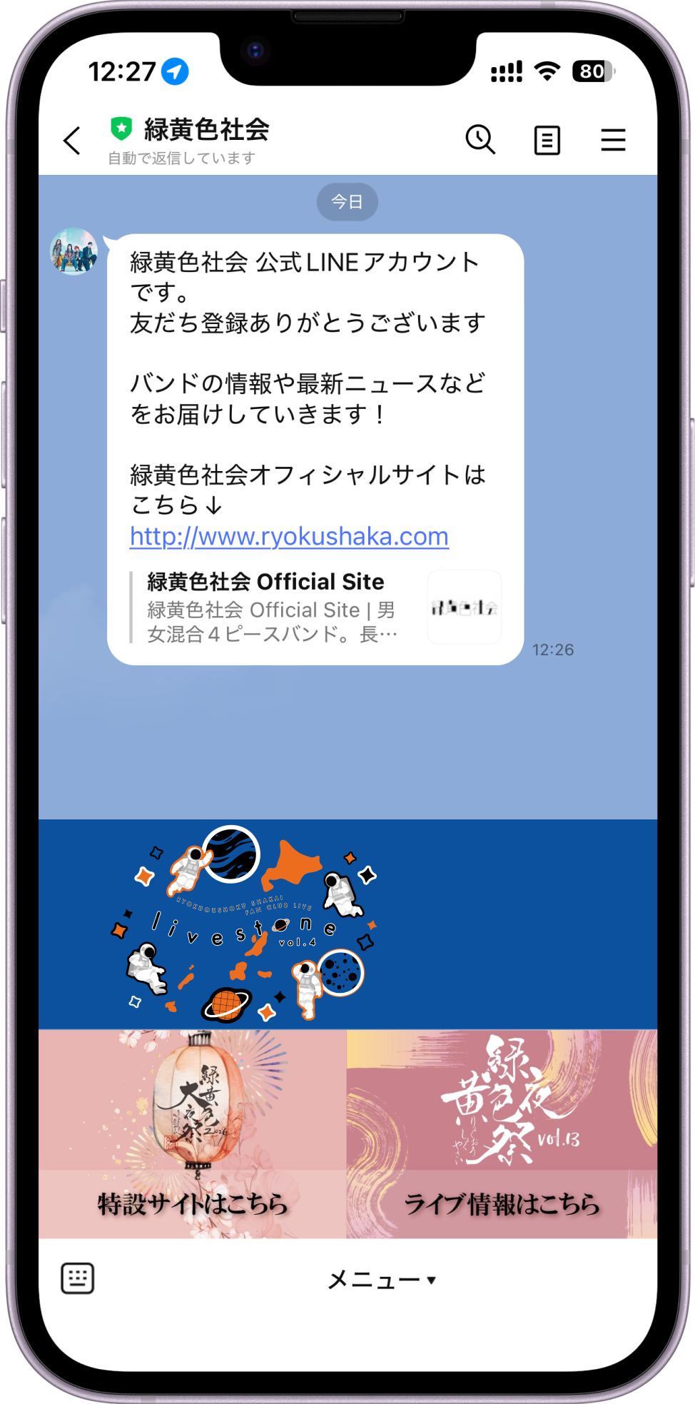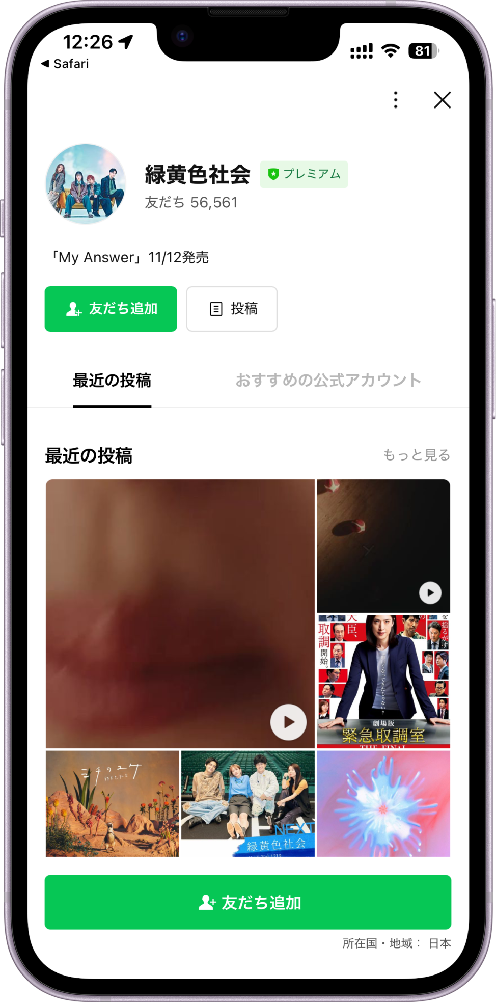 ※「緑黄色社会」公式LINEアカウントの友だち追加をしてください