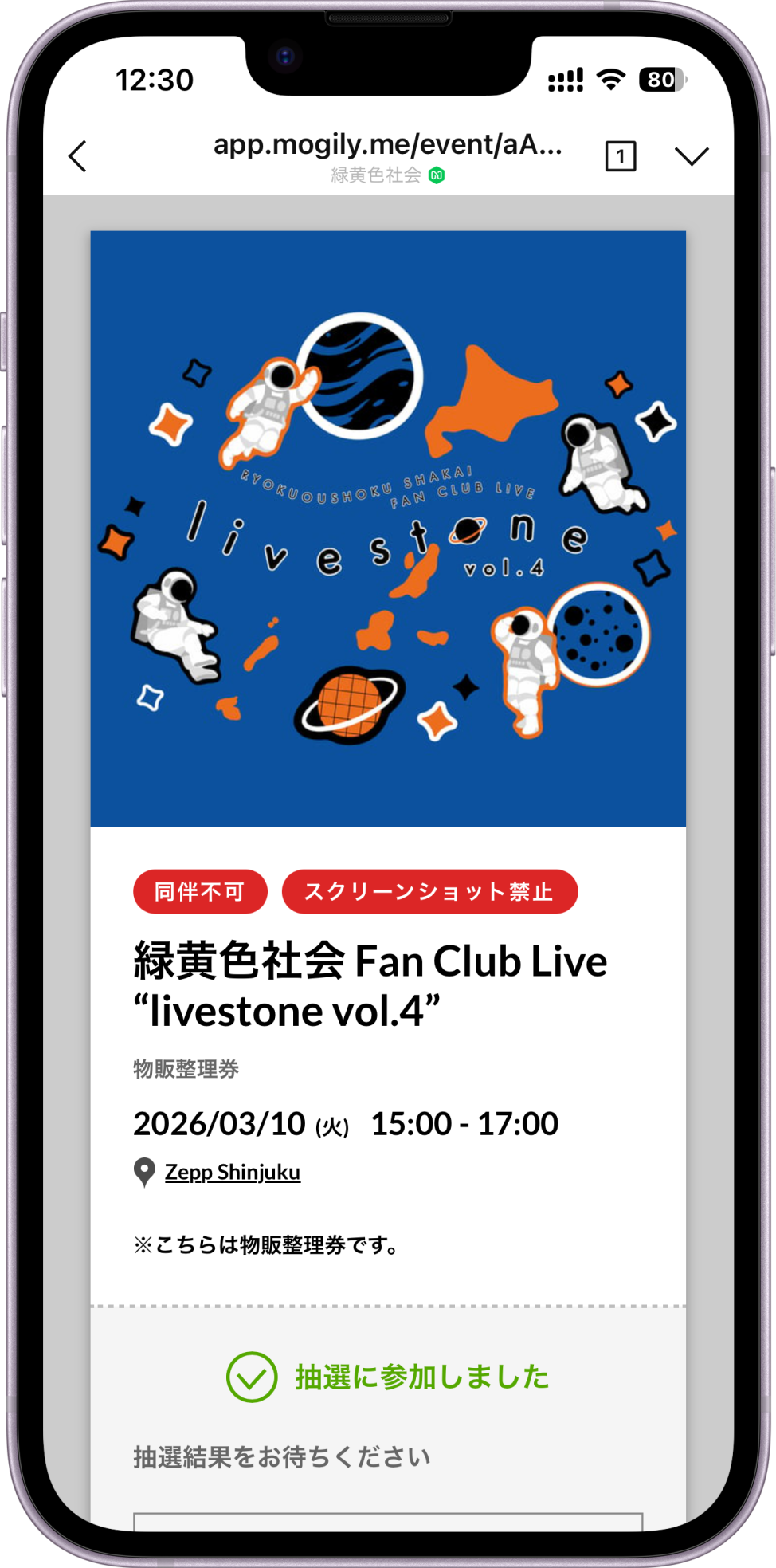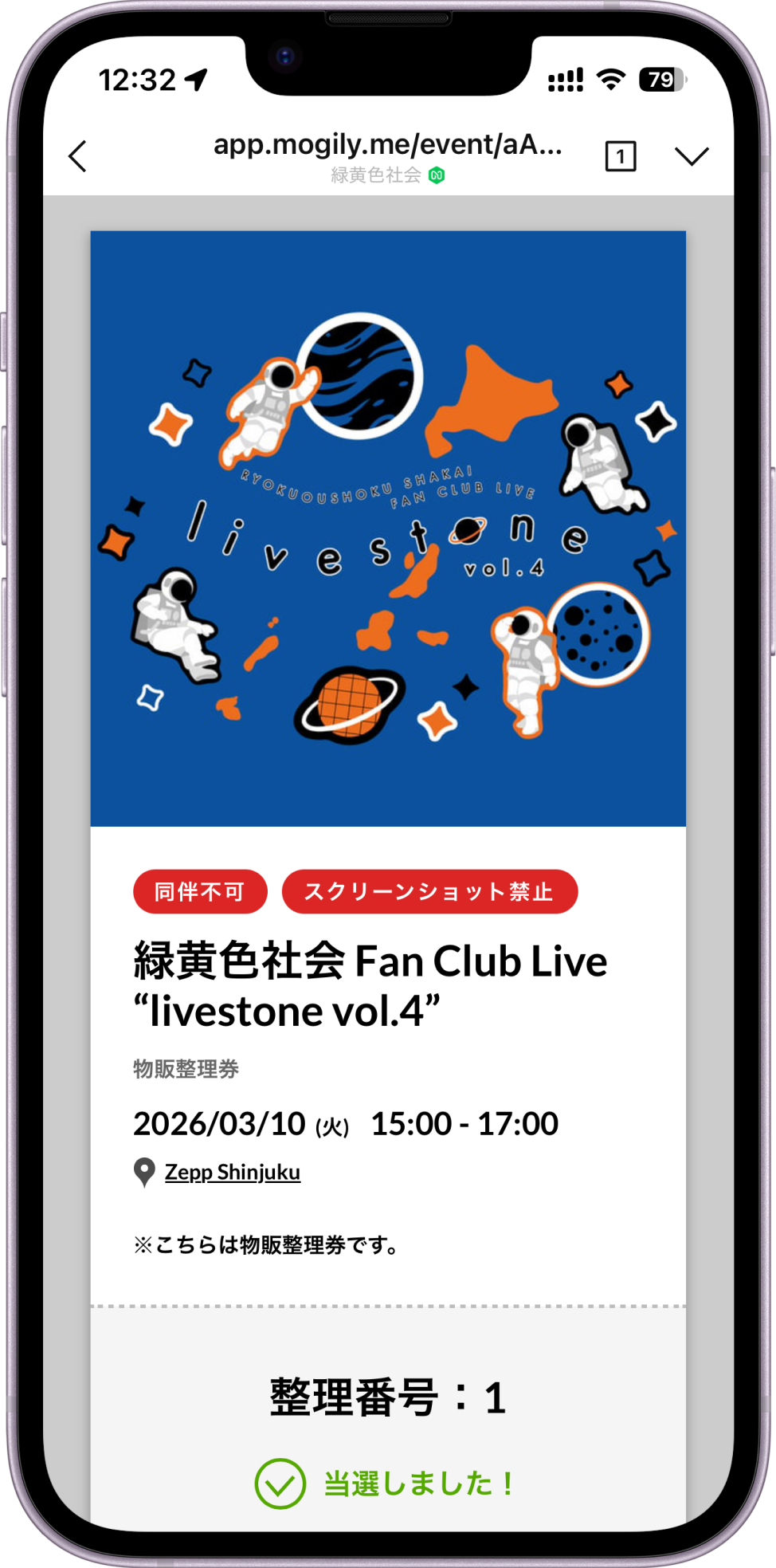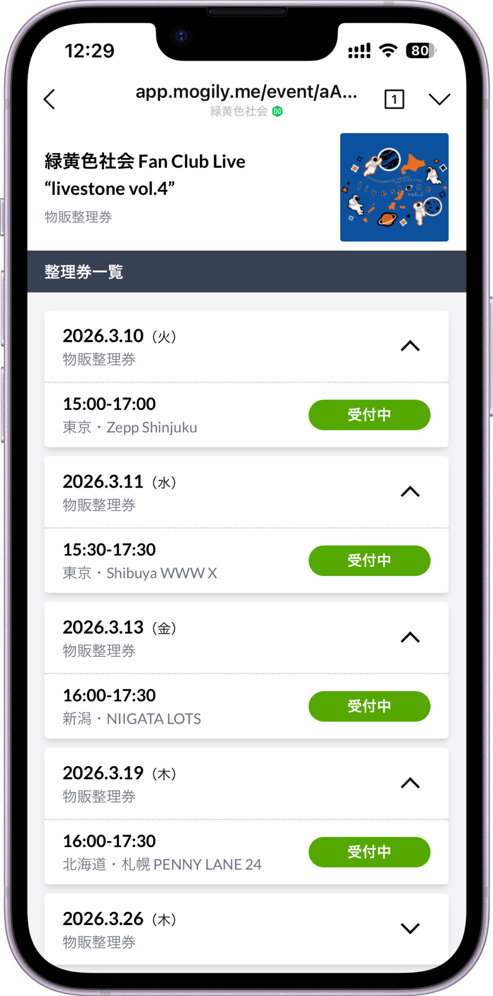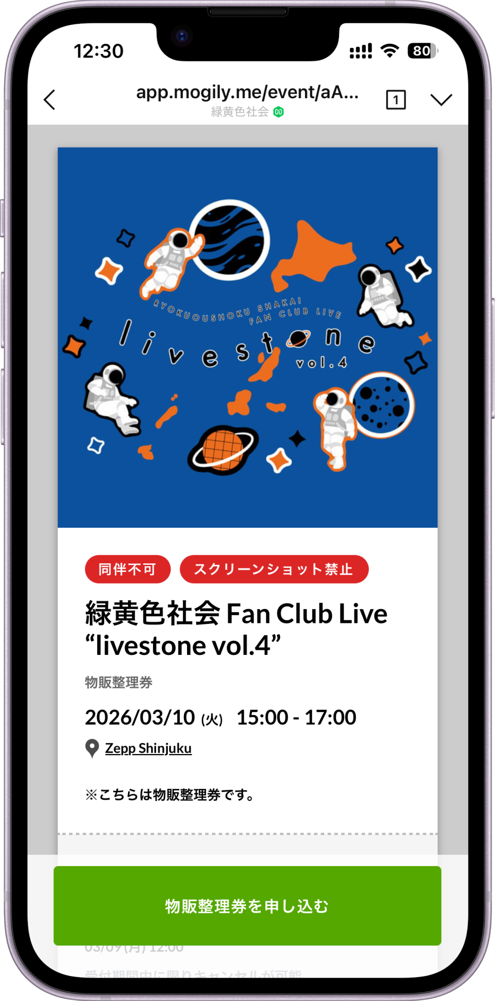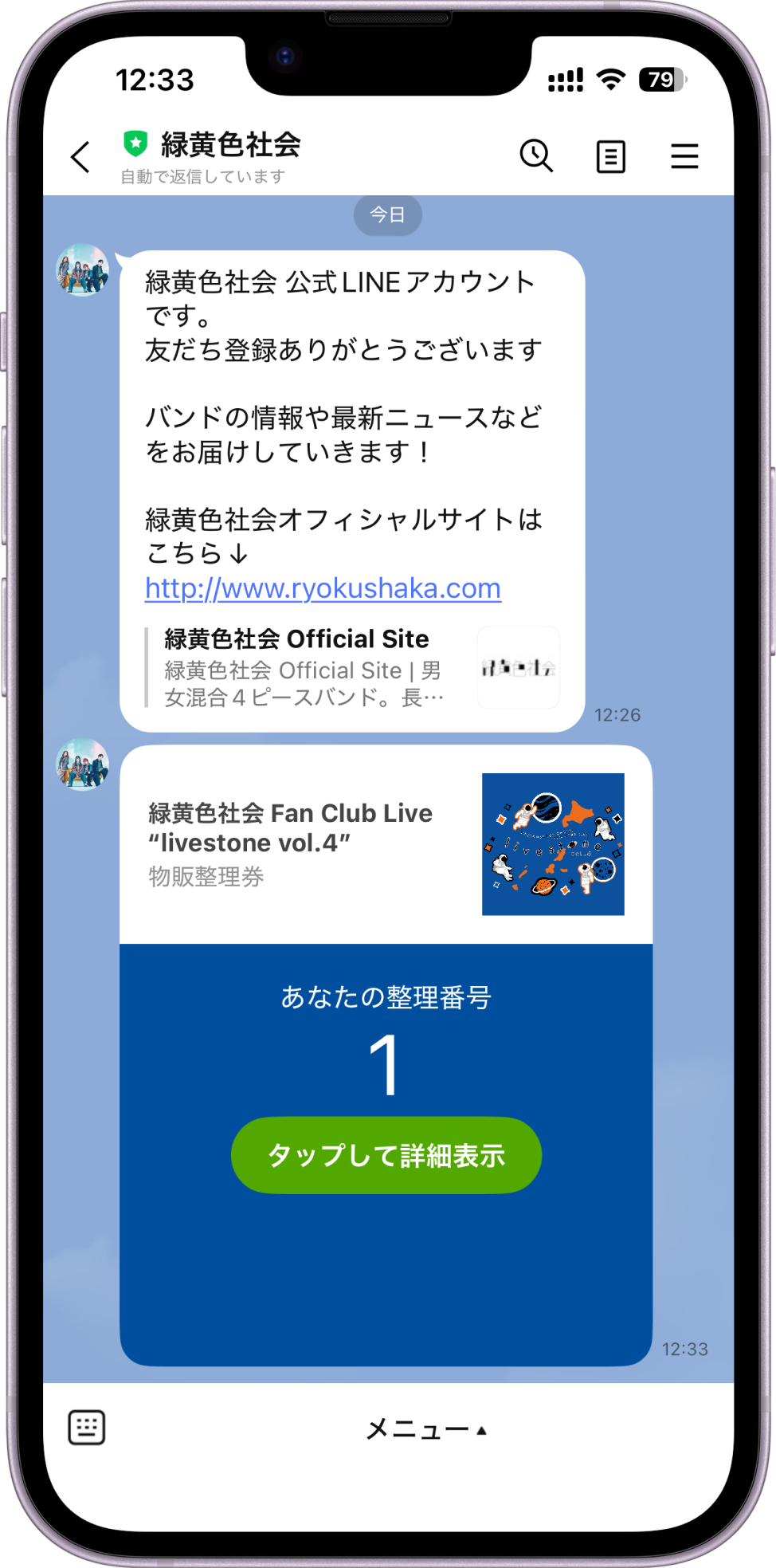 緑黄色社会 Fan Club Live “livestone vol.4”におきまして、混雑緩和を目的としてLINEアプリを利用した物販整理券を導入致します。
